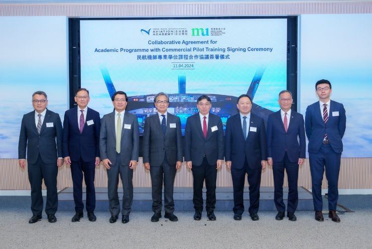 Under the witness of Jack So, Chairman of the Airport Authority Hong Kong (AAHK) and Conrad Wong, HKMU Council Chairman, the agreement was signed by Simon Li, President of HKIAA, and Professor Paul Lam, HKMU President. Also attending the ceremony were Lam Sai-hung, Secretary for Transport and Logistics, Fred Lam, Chief Executive of AAHK, and Victor Liu, Director-General of Civil Aviation.