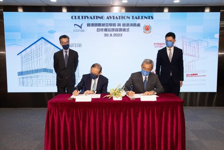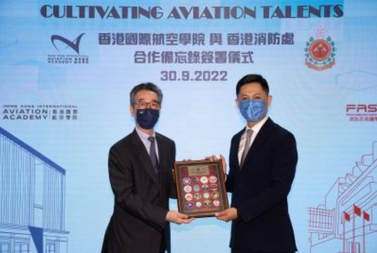 The Hong Kong International Aviation Academy (HKIAA) and the Fire Services Department (FSD) signed a Memorandum of Understanding (MoU) on 30 September 2022, with the aim of nurturing emergency response specialists for aviation incidents for the industry of the Belt and Road Initiative, and strengthening Hong Kong's status as an international aviation hub and a training centre with joint efforts.